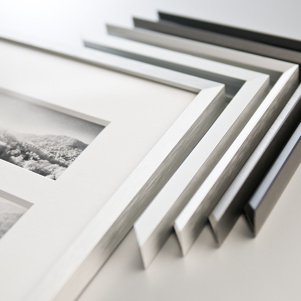 Für eine eindrucksvolle Präsentation haben Sie die Wahl zwischen vier unterschiedlichen, hochwertigen Rahmungen des Herstellers Nielsen Bainbridge.